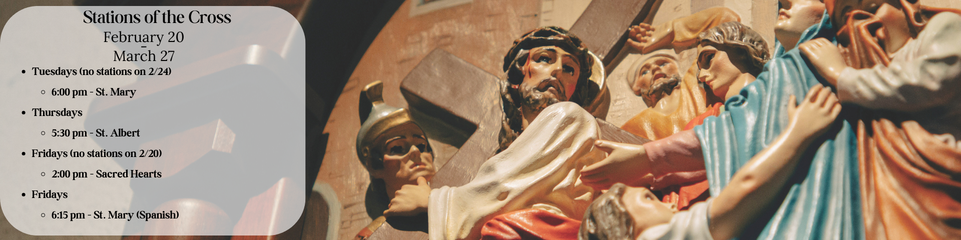 We live stream the 9AM Sunday Mass from Sacred Hearts on the 1st and 3rd Sunday of the month. We live stream the 4PM Saturday from St. Albert the Great on the 2nd and 4th Sunday of the month.